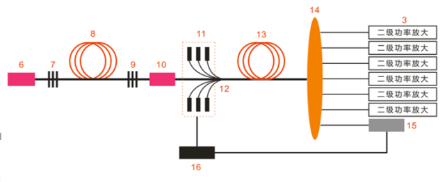 功率放大相干合成技术采用同源种子通过三级分布式放大,再经过相干合成实现万瓦级激光输出,光的相干性非常好,但这种技术对光路系统的稳定性,相位同步性控制提出了很高的要求。