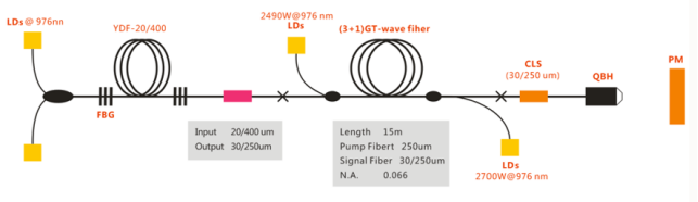 基于GT-Wave Fiber的光纤激光器技术,可以利用双向激光增加泵浦的转换效率,但是GT-Wave制作难度高、热管理困难、可扩展性差、功率输出有限。